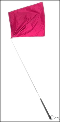 The flag material is composed of a poly coated, rip-stop nylon secured to the shaft with a reinforced grommet or stitched button hole and measures 18" x 18". They are available in a variety of colors (pictured at right).